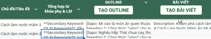 Lúc này, tool sẽ bỏ qua các bước đã làm, đọc toàn bộ dữ liệu bạn đã chỉnh sửa (đặc biệt là dàn bài ở Cột M) và viết ra một bài viết hoàn chỉnh ở Cột N (Nội dung) theo đúng “đơn đặt hàng” của bạn.